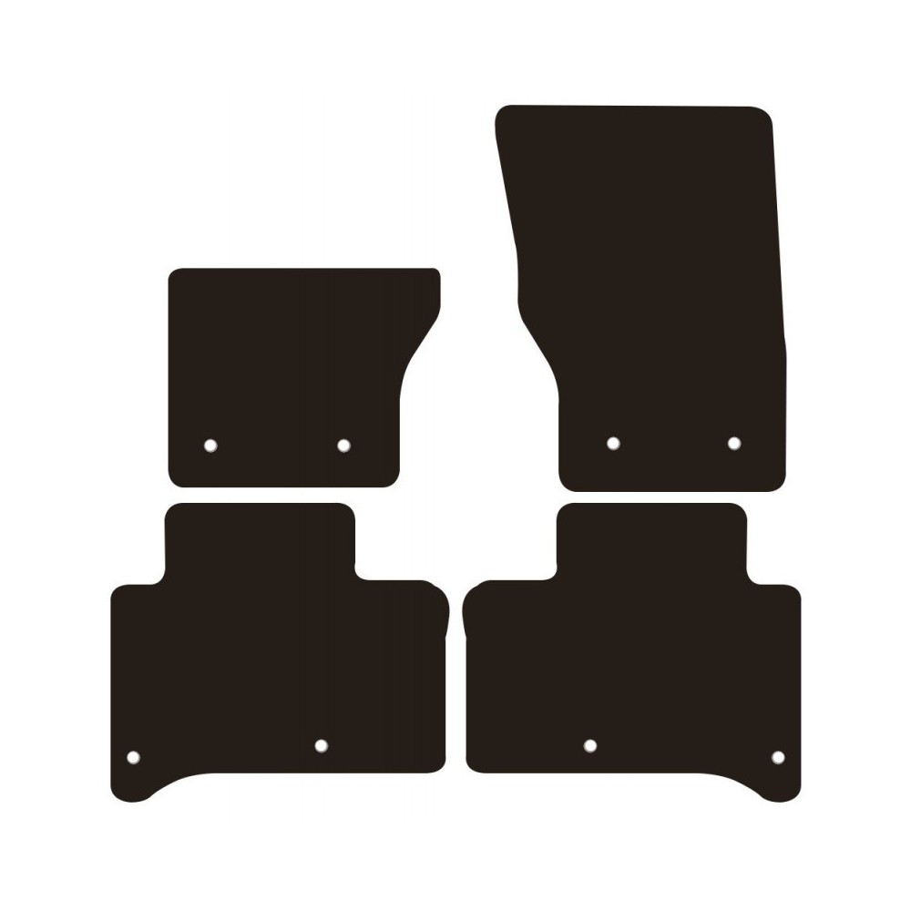 Compatibilita': Land Rover Range Rover Sport (L494) immatricolata dal 06/2013 al 06/2022. FISSAGGIO: con fissaggi per Fix-Points originali (2 fix anteriore/posteriore sx e 2 fix anteriore/posteriore dx). Pezzi confezione: 4 pezzi. Set tappeti in moquette su misura, di ottima qualita', seguono alla perfezione la modellistica dei pianali di ogni modello di auto. In moquette automobilistica agugliata 650gr/mq con battitacco termosaldato ed elegante bordatura perimetrale. Colore NERO.