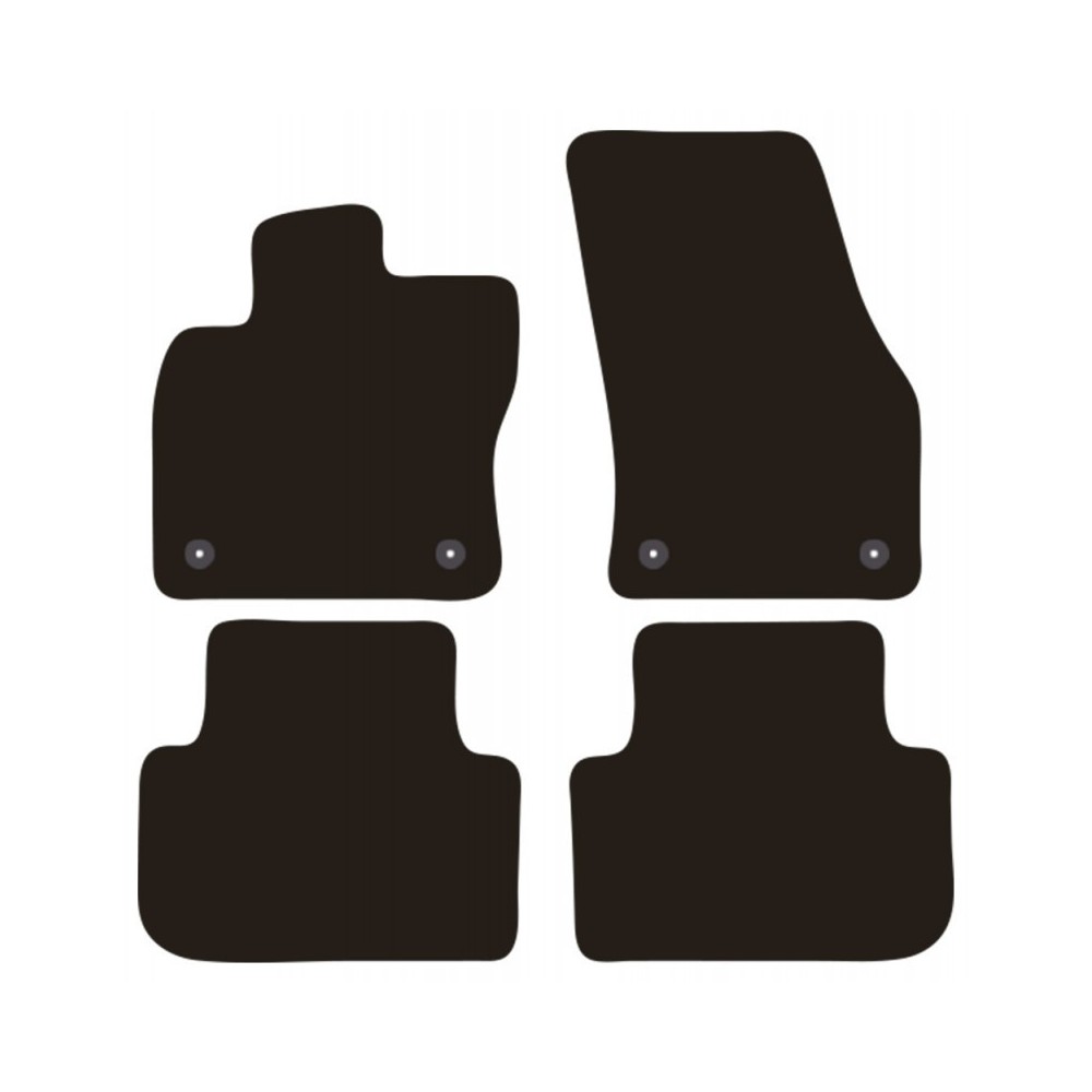 Applicabilita': Volkswagen Tiguan (II) dal 05/2016 al 11/2023. FISSAGGIO: con fissaggi per Fix-Points originali (2 fix anteriore sx e 2 fix anteriore dx). Pezzi confezione: 4 pezzi. Set tappeti in moquette su misura, di ottima qualita', seguono alla perfezione la modellistica dei pianali di ogni modello di auto. In moquette automobilistica agugliata 650gr/mq con battitacco termosaldato ed elegante bordatura perimetrale. Colore NERO.