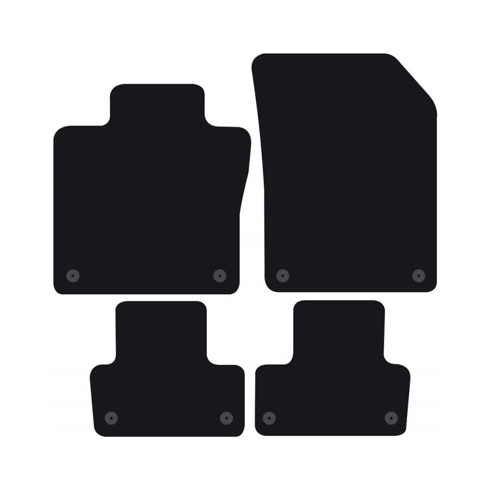 Compatibilita': Volvo XC60 immatricolata dal 2017. FISSAGGIO: con fissaggi per Fix-Points originali (2 fix anteriore sx + 2 fix anteriore dx + 2 fix posteriore sx + 2 fix posteriore dx). Pezzi confezione: 4 pezzi. Set tappeti in moquette su misura, di ottima qualita', seguono alla perfezione la modellistica dei pianali di ogni modello di auto. In moquette automobilistica agugliata 650gr/mq con battitacco termosaldato ed elegante bordatura perimetrale. Colore NERO.