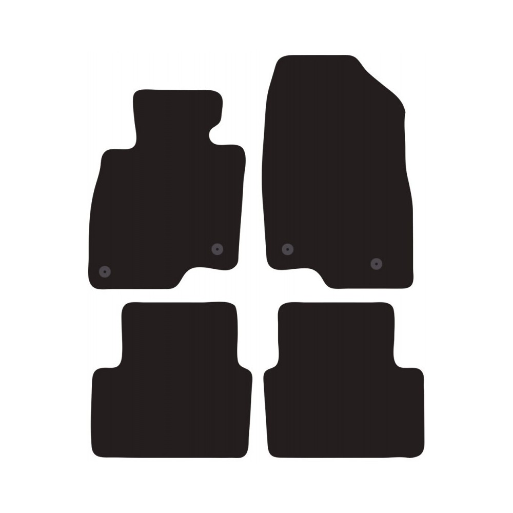 Compatibilita': Mazda 3 (BM), 5 porte immatricolata dal 2013 al 12/2018. FISSAGGIO: con fissaggi per Fix-Points originali (2 fix anteriore sx e 2 fix anteriore dx). Pezzi confezione: 4 pezzi. Set tappeti in moquette su misura, di ottima qualita', seguono alla perfezione la modellistica dei pianali di ogni modello di auto. In moquette automobilistica agugliata 650gr/mq con battitacco termosaldato ed elegante bordatura perimetrale. Colore NERO.