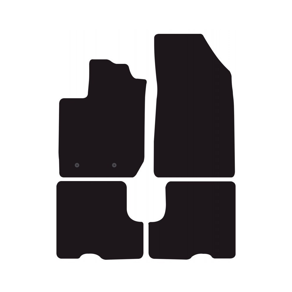 Compatibilita': Dacia Duster (II) dal 02/2018 al 05/2024. FISSAGGIO: con fissaggi per Fix-Points originali (2 fix anteriore sx). Pezzi confezione: 4 pezzi. Set tappeti in moquette su misura, di ottima qualita', seguono alla perfezione la modellistica dei pianali di ogni modello di auto. In moquette automobilistica agugliata 650gr/mq con battitacco termosaldato ed elegante bordatura perimetrale. Colore NERO.