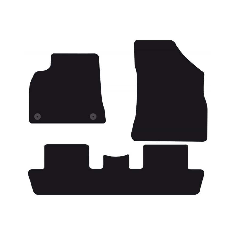 Compatibilita': Peugeot 5008 immatricolata dal 2009 al 2016. FISSAGGIO: con fissaggi per Fix-Points originali (2 fix anteriore sx). Pezzi confezione: 3 pezzi. Set tappeti in moquette su misura, di ottima qualita', seguono alla perfezione la modellistica dei pianali di ogni modello di auto. In moquette automobilistica agugliata 650gr/mq con battitacco termosaldato ed elegante bordatura perimetrale. Colore NERO.