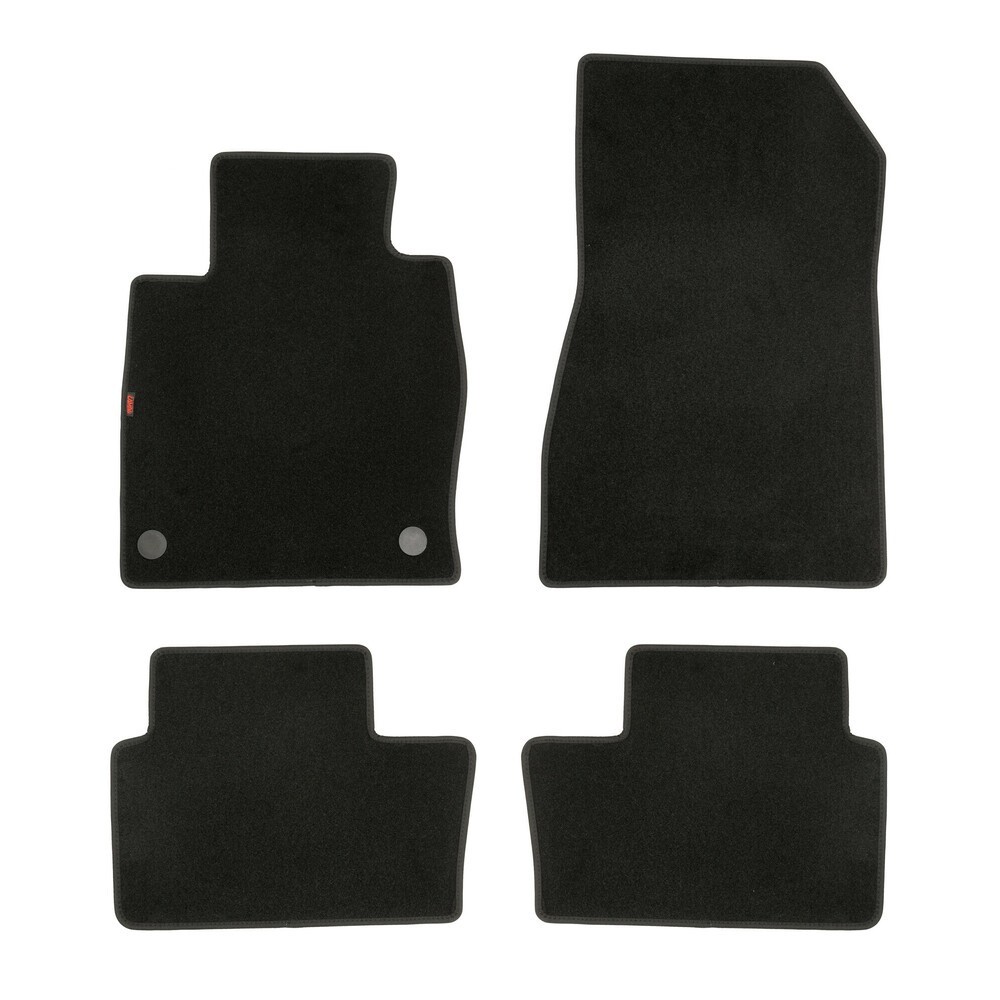 Compatibilita': Nissan Juke (II) dal 12/2019> .Confezione: 4 pezzi. Note: con fissaggio per punti di fissaggio originali. Caratteristiche: moquette automobilistica con certificazione CE a norma EN-14041:2004, 100% polipropilene, fininuta felpata, sottofondo impermeabile ed antiscivolo in Gel Foam, qualita' garantita per durare nel tempo. Colore NERO. Completi di fissaggi per Fix-Points originali se il veicolo e' predisposto.