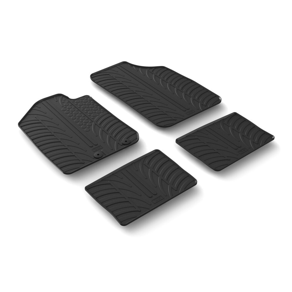 Compatibilita': Dacia Spring 5p dal 04/2021 al 03/2024. Kit da 4 pezzi. Set tappetini su misura in gomma, alta qualita'. Con bottoni di fissaggio specifici ( se il veicolo li prevede in origine ). Bordatura a rilievo maggiorato, retro antiscivolo. Gomma di alta qualita' e lunga durata conforme alla normativa Europea. Speciale trattamento della gomma con profumazione alla vaniglia