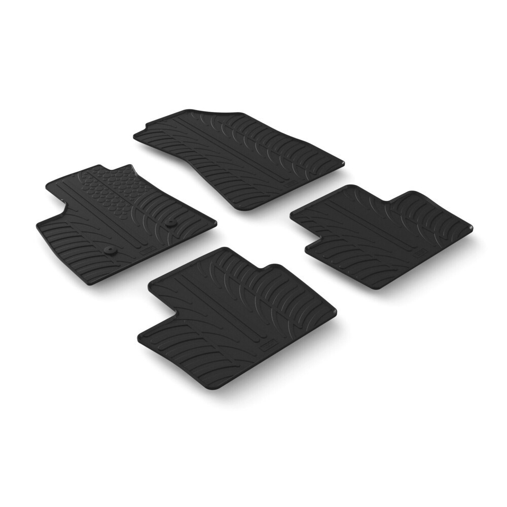 Compatibilita': Renault Austral Hybrid (cambio automatico) dal 09/2022>. Set tappetini su misura 4pz in gomma, alta qualita'. Con bottoni di fissaggio specifici ( se il veicolo li prevede in origine ). Bordatura a rilievo maggiorato, retro antiscivolo. Gomma di alta qualita' e lunga durata conforme alla normativa Europea. Speciale trattamento della gomma con profumazione alla vaniglia