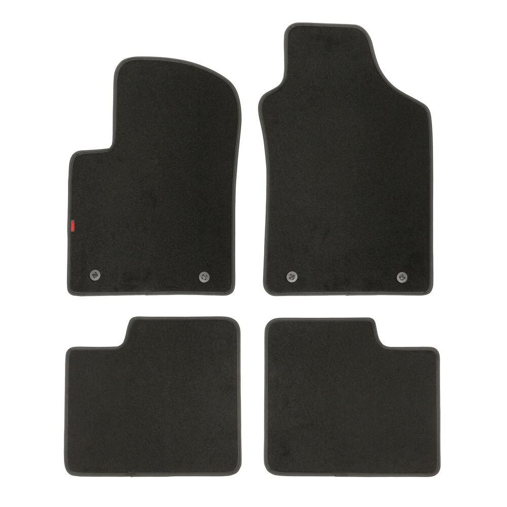 Compatibilità: Fiat 500 / 500 Hybrid (2 fix lato guida) dal 07/2007>. Confezione: 4 pezzi. Note: con fissaggi per veicoli senza predisposizione originale. Caratteristiche: moquette automobilistica con certificazione CE a norma EN-14041:2004, 100% polipropilene, fininuta felpata, sottofondo impermeabile ed antiscivolo in Gel Foam, qualita' garantita per durare nel tempo. Colore NERO.