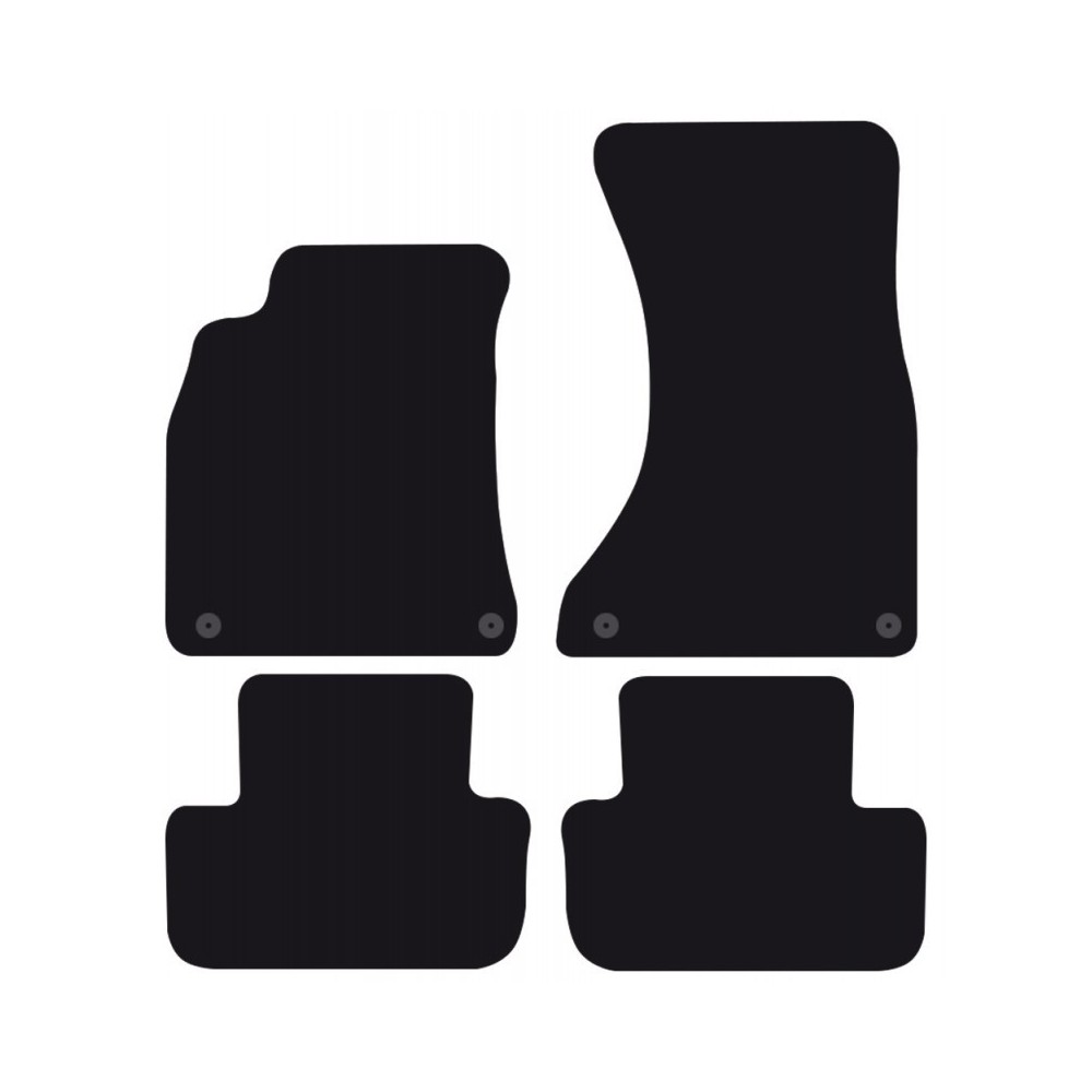 Compatibilita': Audi A4 4 porte immatricolata dal 2007 al 10/2015 - Audi A4 Avant immatricolata dal 2008 al 10/2015. FISSAGGIO: con fissaggi per Fix-Points originali (2 fix anteriore sx + 2 fix anteriore dx). Pezzi confezione: 4 pezzi. Set tappeti in moquette su misura, di ottima qualita', seguono alla perfezione la modellistica dei pianali di ogni modello di auto. In moquette automobilistica agugliata 650gr/mq con battitacco termosaldato ed elegante bordatura perimetrale. Colore NERO.