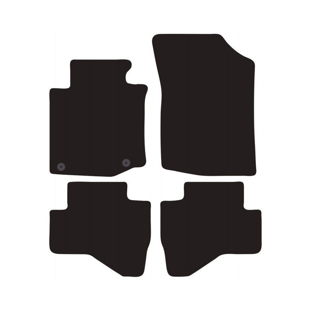 Compatibilita': Citroen C1 3/5 porte immatricolata dal 2010 al 2014. FISSAGGIO: con fissaggi per Fix-Points originali (2 fix anteriore sx). Pezzi confezione: 4 pezzi. Set tappeti in moquette su misura, di ottima qualita', seguono alla perfezione la modellistica dei pianali di ogni modello di auto. In moquette automobilistica agugliata 650gr/mq con battitacco termosaldato ed elegante bordatura perimetrale. Colore NERO.