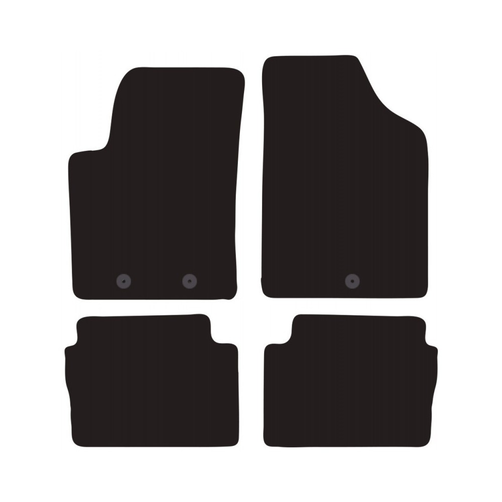 Compatibilita': Hyundai i10 immatricolata dal 2008 al 2013. FISSAGGIO: con fissaggi per Fix-Points originali (2 fix anteriore sx + 1 anteriore dx). Pezzi confezione: 4 pezzi. Set tappeti in moquette su misura, di ottima qualita', seguono alla perfezione la modellistica dei pianali di ogni modello di auto. In moquette automobilistica agugliata 650gr/mq con battitacco termosaldato ed elegante bordatura perimetrale. Colore NERO.