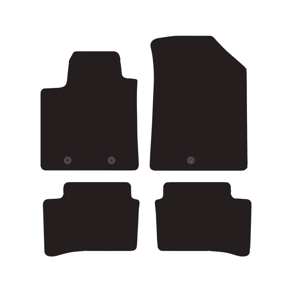 Compatibilita': Hyundai i10 (II) immatricolata dal 2013 al 2020. FISSAGGIO: con fissaggi per Fix-Points originali (2 fix anteriore sx + 1 anteriore dx). Pezzi confezione: 4 pezzi. Set tappeti in moquette su misura, di ottima qualita', seguono alla perfezione la modellistica dei pianali di ogni modello di auto. In moquette automobilistica agugliata 650gr/mq con battitacco termosaldato ed elegante bordatura perimetrale. Colore NERO.