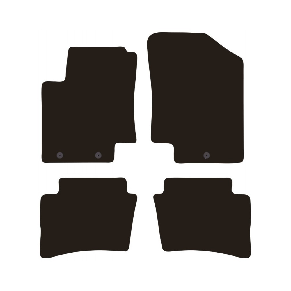 Compatibilita': Hyundai i20 3/5 porte immatricolata dal 2009 al 2014. FISSAGGIO: con fissaggi per Fix-Points originali (2 fix anteriore sx + 1 anteriore dx). Pezzi confezione: 4 pezzi. Set tappeti in moquette su misura, di ottima qualita', seguono alla perfezione la modellistica dei pianali di ogni modello di auto. In moquette automobilistica agugliata 650gr/mq con battitacco termosaldato ed elegante bordatura perimetrale. Colore NERO.