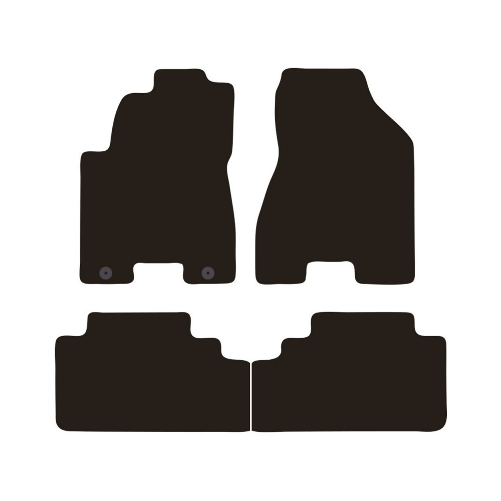 Compatibilita': Hyundai Tucson immatricolata dal 2004 al 2010. FISSAGGIO: con fissaggi per Fix-Points originali (2 fix anteriore sx). Pezzi confezione: 4 pezzi. Set tappeti in moquette su misura, di ottima qualita', seguono alla perfezione la modellistica dei pianali di ogni modello di auto. In moquette automobilistica agugliata 650gr/mq con battitacco termosaldato ed elegante bordatura perimetrale. Colore NERO.