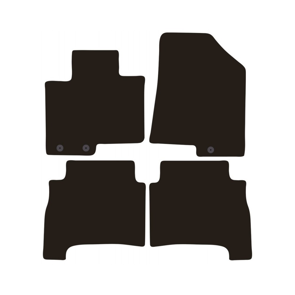 Compatibilita': Kia Sorento 5 posti immatricolata dal 2009 al 09/2012. FISSAGGIO: con fissaggi per Fix-Points originali (2 fix anteriore sx + 1 fix anteriore dx). Pezzi confezione: 4 pezzi. Set tappeti in moquette su misura, di ottima qualita', seguono alla perfezione la modellistica dei pianali di ogni modello di auto. In moquette automobilistica agugliata 650gr/mq con battitacco termosaldato ed elegante bordatura perimetrale. Colore NERO.