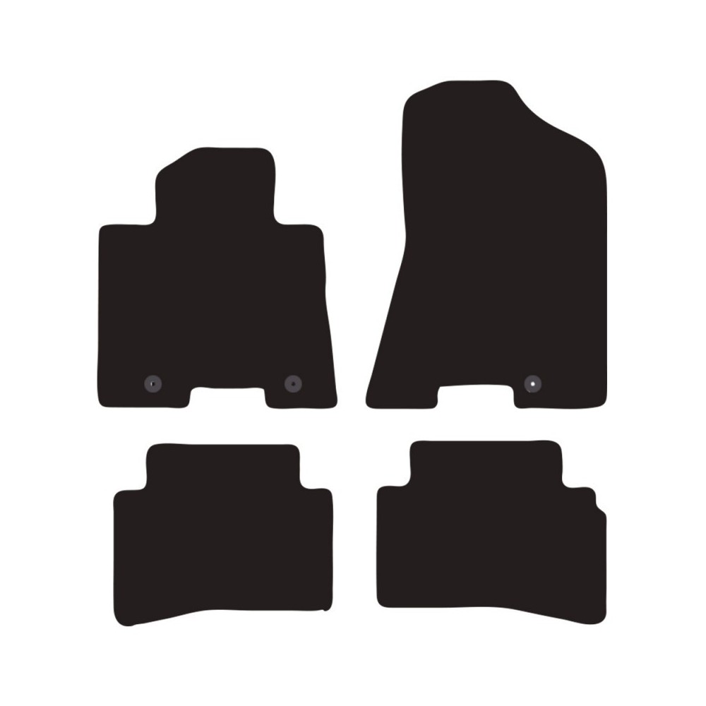 Compatibilita': Kia Sportage (IV) immatricolata dal 2016 al 2021. FISSAGGIO: con fissaggi per Fix-Points originali (2 fix anteriore sx + 1 fix anteriore dx). Pezzi confezione: 4 pezzi. Set tappeti in moquette su misura, di ottima qualita', seguono alla perfezione la modellistica dei pianali di ogni modello di auto. In moquette automobilistica agugliata 650gr/mq con battitacco termosaldato ed elegante bordatura perimetrale. Colore NERO.