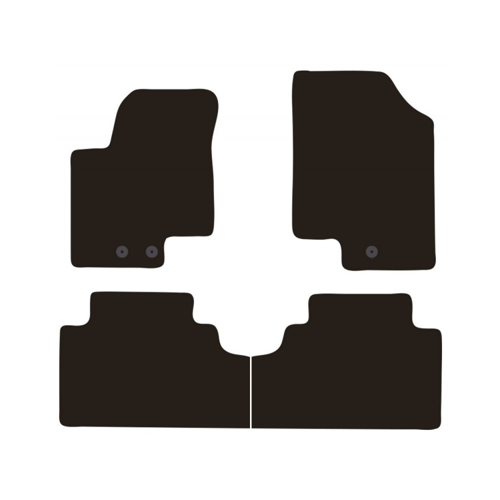 Compatibilita': Kia Venga immatricolata dal 2010. FISSAGGIO: con fissaggi per Fix-Points originali (2 fix anteriore sx + 1 fix anteriore dx). Pezzi confezione: 4 pezzi. Set tappeti in moquette su misura, di ottima qualita', seguono alla perfezione la modellistica dei pianali di ogni modello di auto. In moquette automobilistica agugliata 650gr/mq con battitacco termosaldato ed elegante bordatura perimetrale. Colore NERO.
