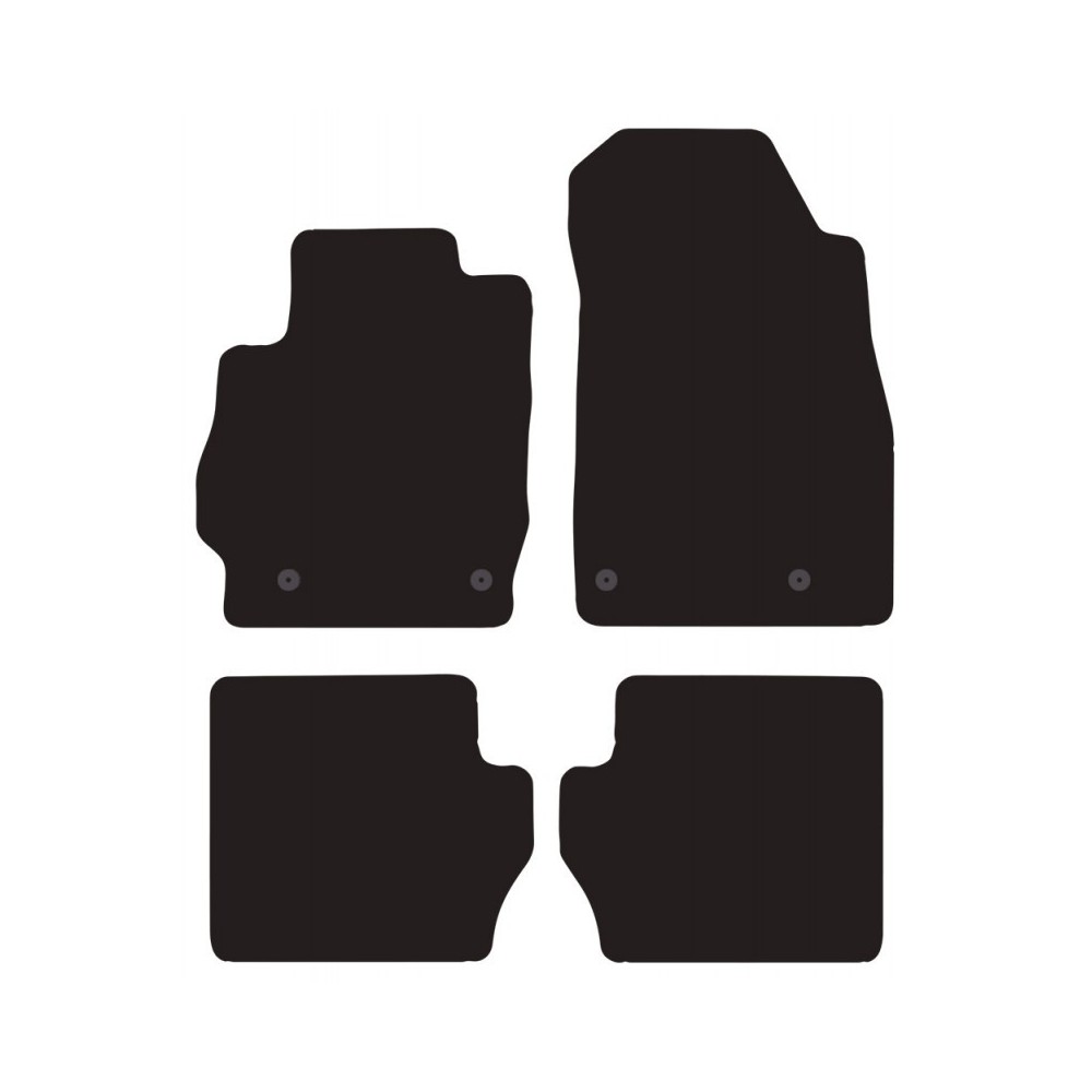 Compatibilita': Mazda 2 (3/5 porte) immatricolata dal 2007 al 2015. FISSAGGIO: con fissaggi per Fix-Points originali (2 fix anteriore sx + 2 fix anteriore dx). Pezzi confezione: 4 pezzi. Set tappeti in moquette su misura, di ottima qualita', seguono alla perfezione la modellistica dei pianali di ogni modello di auto. In moquette automobilistica agugliata 650gr/mq con battitacco termosaldato ed elegante bordatura perimetrale. Colore NERO.