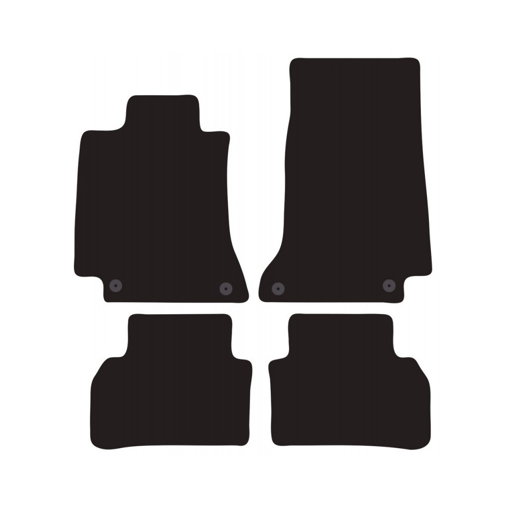 Compatibilita': Mercedes Classe C (W205) 4 porte immatricolata dal 2014 al 2021 ( NON compatibile con versione SW ). FISSAGGIO: con fissaggi per Fix-Points originali (2 fix anteriore sx + 2 fix anteriore dx). Pezzi confezione: 4 pezzi. Set tappeti in moquette su misura, di ottima qualita', seguono alla perfezione la modellistica dei pianali di ogni modello di auto. In moquette automobilistica agugliata 650gr/mq con battitacco termosaldato ed elegante bordatura perimetrale. Colore NERO.