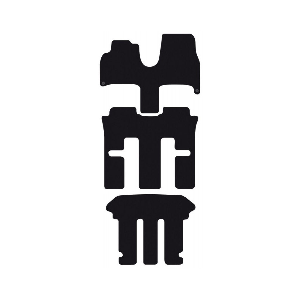 Compatibilita': Peugeot 807 immatricolata dal 2002 al 2014. FISSAGGIO: con fissaggi universali per veicoli senza predisposizione. Pezzi confezione: 3 pezzi. Set tappeti in moquette su misura, di ottima qualita', seguono alla perfezione la modellistica dei pianali di ogni modello di auto. In moquette automobilistica agugliata 650gr/mq con battitacco termosaldato ed elegante bordatura perimetrale. Colore NERO.