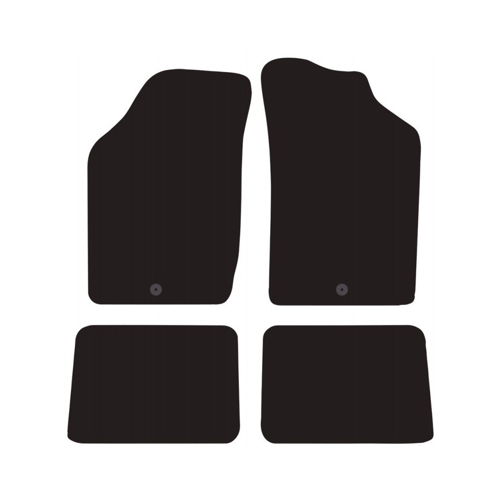 Compatibilita': Renault Clio II (BB, CB) 3/5 porte / Clio Storia immatricolata dal 1998 al 2010. FISSAGGIO: con fissaggi universali per veicoli senza predisposizione. Pezzi confezione: 4 pezzi. Set tappeti in moquette su misura, di ottima qualita', seguono alla perfezione la modellistica dei pianali di ogni modello di auto. In moquette automobilistica agugliata 650gr/mq con battitacco termosaldato ed elegante bordatura perimetrale. Colore NERO.