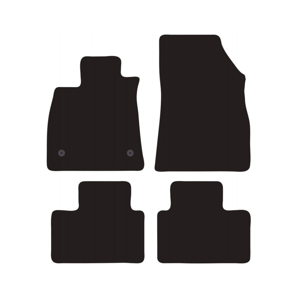 Compatibilita': Renault Talisman 4 porte immatricolata dal 2015 ( anche per versione Sporter ). FISSAGGIO: con fissaggi per Fix-Points originali (2 fix anteriore sx). Pezzi confezione: 4 pezzi. Set tappeti in moquette su misura, di ottima qualita', seguono alla perfezione la modellistica dei pianali di ogni modello di auto. In moquette automobilistica agugliata 650gr/mq con battitacco termosaldato ed elegante bordatura perimetrale. Colore NERO.