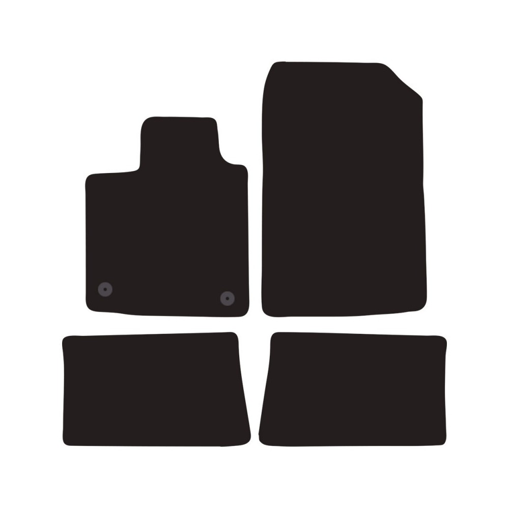 Compatibilita': Renault Twingo immatricolata dal 2007 al 2014. FISSAGGIO: con fissaggi per Fix-Points originali (2 fix anteriore sx). Pezzi confezione: 4 pezzi. Set tappeti in moquette su misura, di ottima qualita', seguono alla perfezione la modellistica dei pianali di ogni modello di auto. In moquette automobilistica agugliata 650gr/mq con battitacco termosaldato ed elegante bordatura perimetrale. Colore NERO.