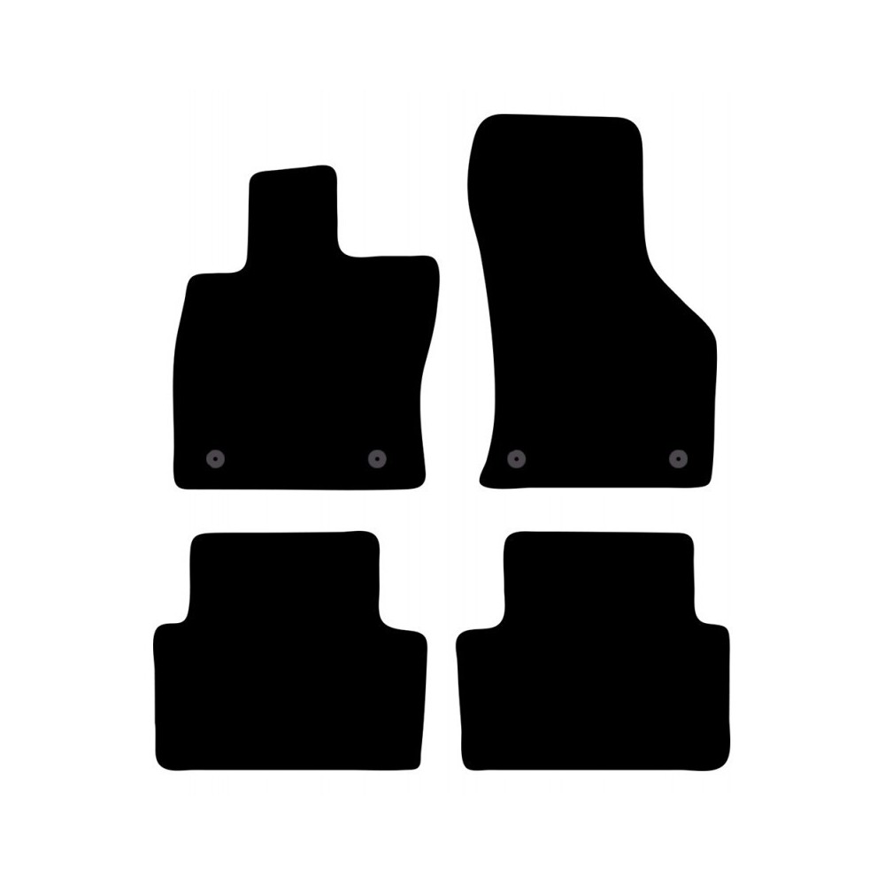 Compatibilita': Skoda Octavia III (5E3, 5E5) 5 porte e SW immatricolata dal 2013 al 2020. FISSAGGIO: con fissaggi per Fix-Points originali (2 fix anteriore sx + 2 fix anteriore dx). Pezzi confezione: 4 pezzi. Set tappeti in moquette su misura, di ottima qualita', seguono alla perfezione la modellistica dei pianali di ogni modello di auto. In moquette automobilistica agugliata 650gr/mq con battitacco termosaldato ed elegante bordatura perimetrale. Colore NERO.
