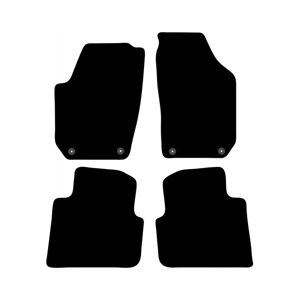 Compatibilita': Skoda Roomster immatricolata dal 2006. FISSAGGIO: con fissaggi per Fix-Points originali (2 fix anteriore sx + 2 fix anteriore dx). Pezzi confezione: 4 pezzi. Set tappeti in moquette su misura, di ottima qualita', seguono alla perfezione la modellistica dei pianali di ogni modello di auto. In moquette automobilistica agugliata 650gr/mq con battitacco termosaldato ed elegante bordatura perimetrale. Colore NERO.