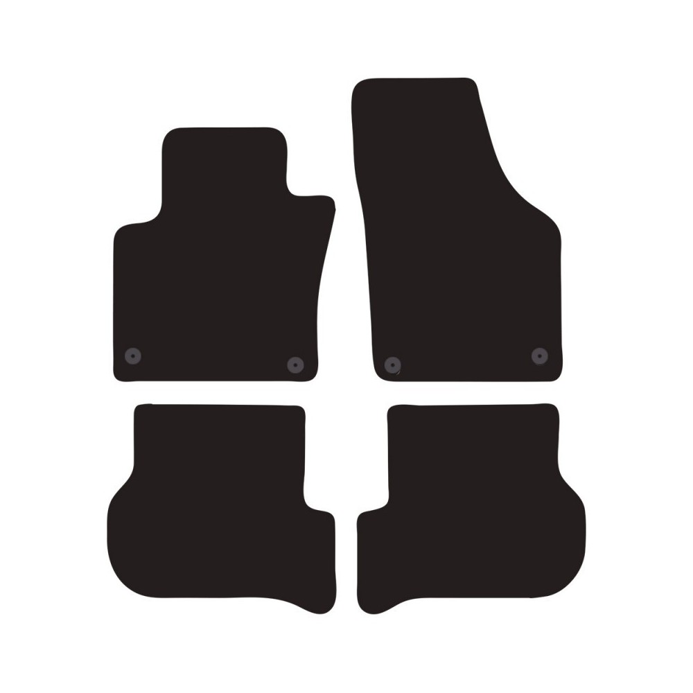 Compatibilita': Volkswagen Golf Plus immatricolata dal 2005 al 2009. FISSAGGIO: con fissaggi per Fix-Points originali (2 fix anteriore sx + 2 fix anteriore dx). Pezzi confezione: 4 pezzi. Set tappeti in moquette su misura, di ottima qualita', seguono alla perfezione la modellistica dei pianali di ogni modello di auto. In moquette automobilistica agugliata 650gr/mq con battitacco termosaldato ed elegante bordatura perimetrale. Colore NERO.