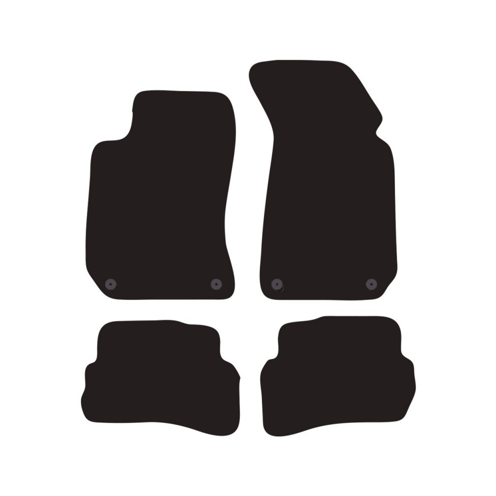 Compatibilita': Volkswagen Passat (3BG, 3B3, 3B6) 4 porte e SW immatricolata dal 2001 al 2005. NOTE: questo modello di auto puo' avere fix tondi o piu' raramente ovali, questi tappeti sono dotati di fix tondi (e' possibile avere come optional i fix ovali). FISSAGGIO: con fissaggi per Fix-Points originali (2 fix anteriore sx + 2 fix anteriore dx). Pezzi confezione: 4 pezzi. Set tappeti in moquette su misura, di ottima qualita', seguono alla perfezione la modellistica dei pianali di ogni modello di auto. In moquette automobilistica agugliata 650gr/mq con battitacco termosaldato ed elegante bordatura perimetrale. Colore NERO.