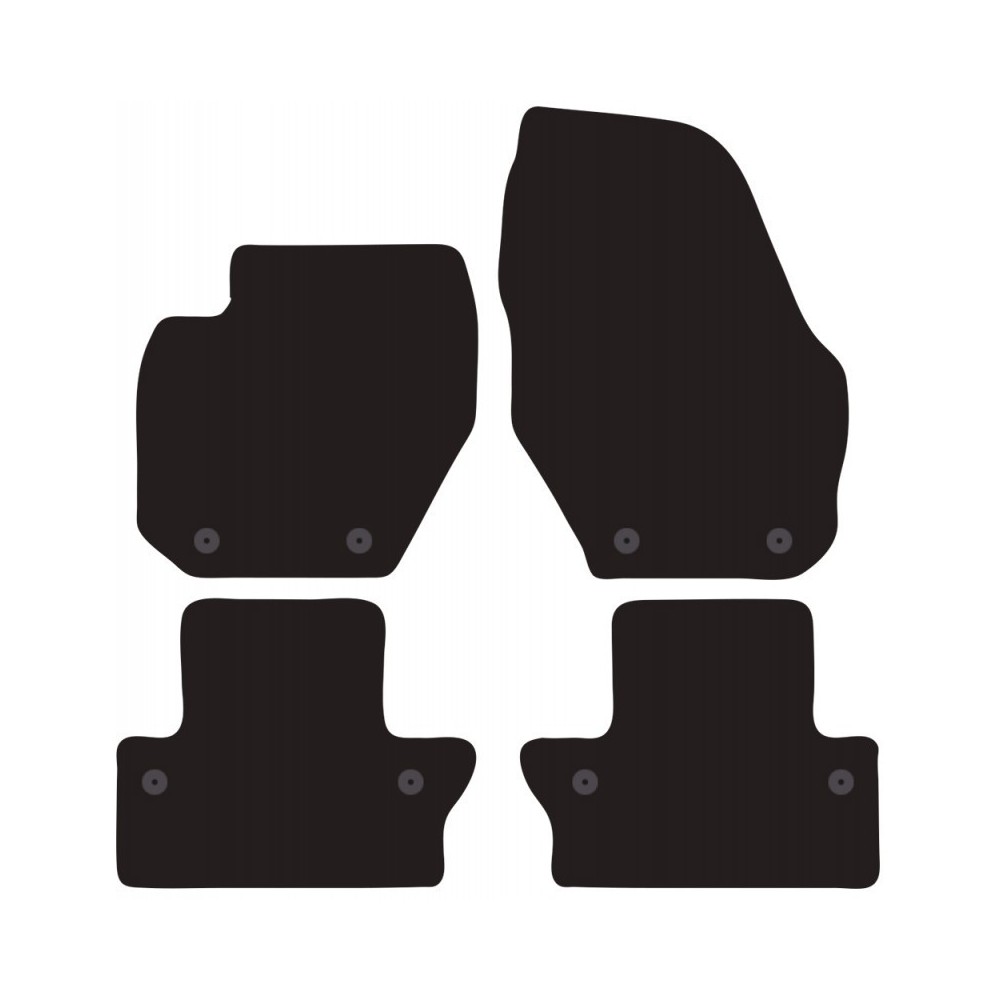 Compatibilita': Volvo V60 e S60 (anche versione Cross Country) immatricolata dal 2010 al 10/2018. FISSAGGIO: con fissaggi per Fix-Points originali (2 fix anteriore sx + 2 fix anteriore dx + 2 fix posteriore sx + 2 fix posteriore dx). Pezzi confezione: 4 pezzi. Set tappeti in moquette su misura, di ottima qualita', seguono alla perfezione la modellistica dei pianali di ogni modello di auto. In moquette automobilistica agugliata 650gr/mq con battitacco termosaldato ed elegante bordatura perimetrale. Colore NERO.
