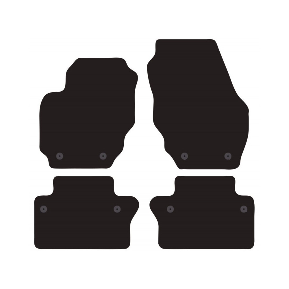Compatibilita': Volvo V70 immatricolata dal 2007. FISSAGGIO: con fissaggi per Fix-Points originali (2 fix anteriore sx + 2 fix anteriore dx + 2 fix posteriore sx + 2 fix posteriore dx). Pezzi confezione: 4 pezzi. Set tappeti in moquette su misura, di ottima qualita', seguono alla perfezione la modellistica dei pianali di ogni modello di auto. In moquette automobilistica agugliata 650gr/mq con battitacco termosaldato ed elegante bordatura perimetrale. Colore NERO.