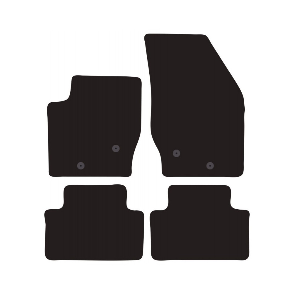 Compatibilita': Volvo XC90 immatricolata dal 2002 al 2014. FISSAGGIO: con fissaggi per Fix-Points originali (2 fix anteriore sx + 2 fix anteriore dx + 2 fix posteriore sx + 2 fix posteriore dx). Pezzi confezione: 4 pezzi. Set tappeti in moquette su misura, di ottima qualita', seguono alla perfezione la modellistica dei pianali di ogni modello di auto. In moquette automobilistica agugliata 650gr/mq con battitacco termosaldato ed elegante bordatura perimetrale. Colore NERO.