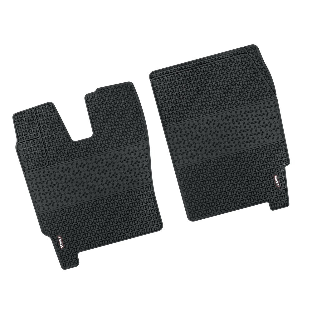 Compatibilita': Iveco Eurocargo dal 09/2003>. Coppia tappeti su misura in Eco Gomma per camion, ottima qualita' per una lunga durata. Bordatura a rilievo maggiorato, possono essere utilizzati anche in condizioni estreme con forte presenza di acqua, fango, sporcizia e neve. Retro antiscivolo, facili da pulire, lavabili con idropulitrice.