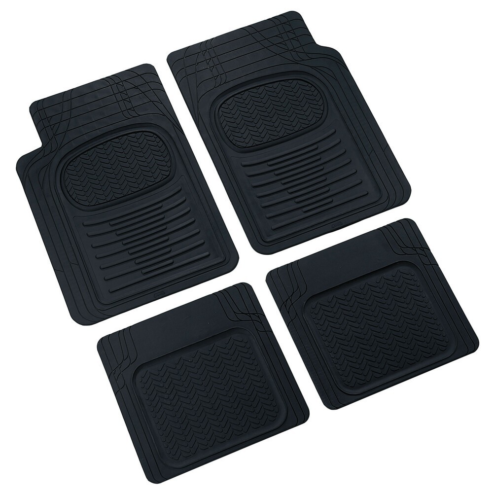 Set 4 pezzi tappetini tappeti universali auto in gomma colore nero 71x49