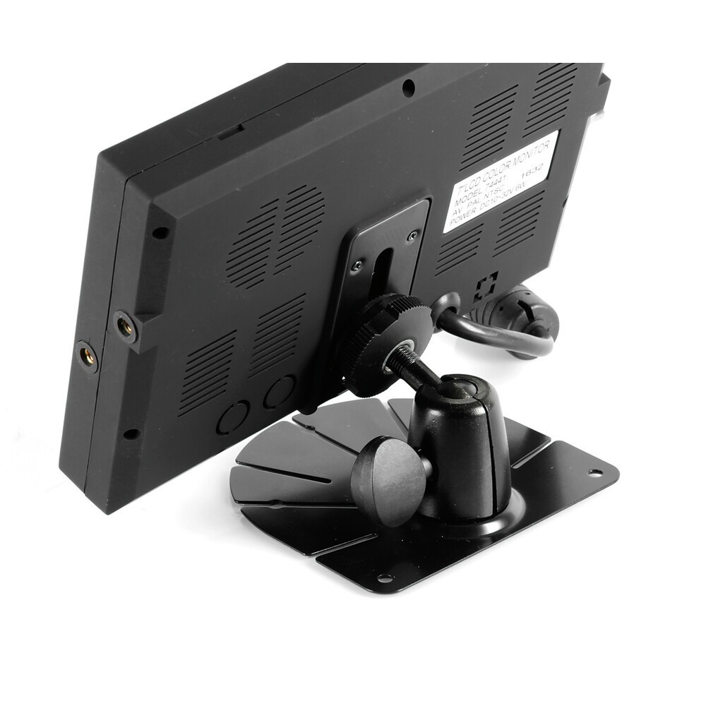 Monitor LCD a colori da 7 pollici con ampio angolo visivo e alta risoluzione. 6 lingue selezionabili. Formato video PAL/NTSC. ''Quad'': permette di visualizzare contemporaneamente da 1 a 4 telecamere sullo stesso monitor; supporta fino a 4 telecamere wireless. 13 modalita' video diverse: singola, doppia, tripla e quadrupla e tante altre combinazioni. Inneschi per l'attivazione delle telecamere in base alla funzione (retromarcia, freccia destra, freccia sinistra...) con passaggio automatico alla videata specifica della telecamera attivata. DVR: registra quello che succede durante la guida o le manovre (utile in caso di incidenti); Micro SD da max 128 Gb. Voltaggio compatibile con 10-32V. Funziona con batterie 12V / 24V. Risoluzione 800 x 3 (RGB) x 480. Angolo visivo: U: 50 / D: 70 / R: 70 / L: 70. Temperature di funzionamento da -20 gradiC a +70 gradiC. Altoparlante integrato. Immagine regolabile orizzontalmente, verticalmente, a specchio o normale. Telecomando multifunzione. Visiera parasole. Compatibile con Telecamera T5 Wireless, art. 74434. Per tutte le misure vedi immagine allegata. I sistemi di telecamere e monitor ''Lampa Professional Series'' permettono al guidatore di avere una visuale maggiore dell'ambiente circostante al proprio veicolo, offrendo visuali ampie e immagini multiple sullo stesso display. Le notevoli dimensioni di molti veicoli e macchine operatrici diminuiscono notevolmente la visuale del conducente creando angoli ciechi che sono la principale cause di incidenti, danni a veicoli e persone. ''Professional Series'' e' un sistema modulare che offre una visuale a 360 gradi in fase di guida, durante le operazioni di carico e scarico, di manovra e in caso di sosta.