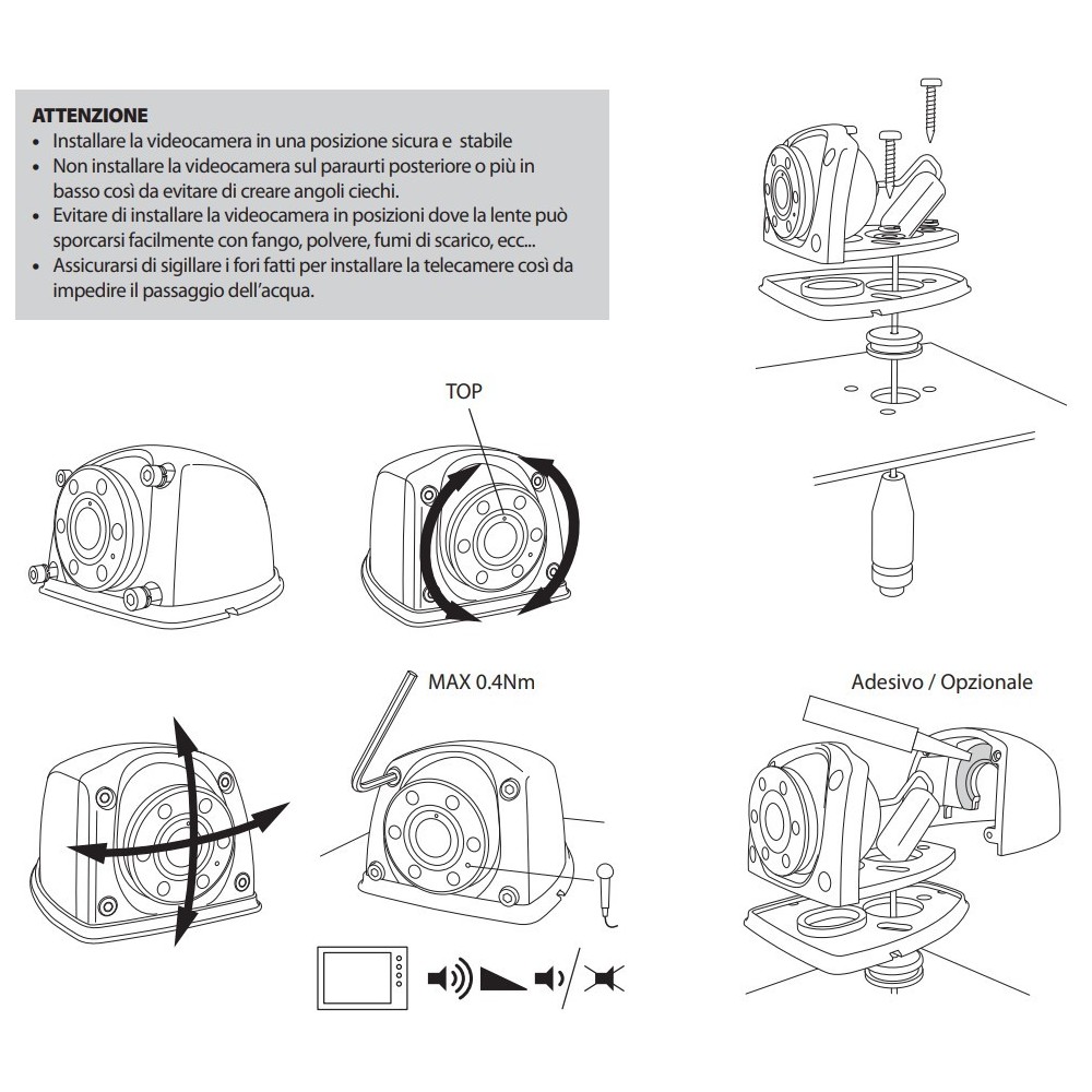 Telecamera laterale a colori con sensore 1/3'' CMOS ad alta definizione. Grado di impermeabilita' IP69K. Cavo impermeabile con innesto a vite e copertura di protezione. Risoluzione 728 x 488 pixels. Ampio angolo visivo di 140 gradi. Visione notturna ad infrarossi fino a 5m. Funzione specchio per girare immagine (installazione a destra/sinistra). Sensore giorno/notte per regolazioni automatiche. Angolo visivo regolabile. Robusta struttura antiurto. Resiste a temperature molto fredde (-20 gradiC) e molto calde (+70 gradiC). I sistemi di telecamere e monitor ''Lampa Professional Series'' permettono al guidatore di avere una visuale maggiore dell'ambiente circostante al proprio veicolo, offrendo visuali ampie e immagini multiple sullo stesso display. Le notevoli dimensioni di molti veicoli e macchine operatrici diminuiscono notevolmente la visuale del conducente creando angoli ciechi che sono la principale cause di incidenti, danni a veicoli e persone. ''Professional Series'' e' un sistema modulare che offre una visuale a 360 gradi in fase di guida, durante le operazioni di carico e scarico, di manovra e in caso di sosta.