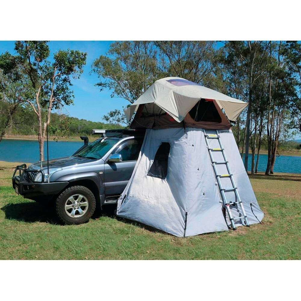 Ottima per creare uno spogliatoio o uno spazio riparato aggiuntivo. Fissaggio alle canaline SideTrack presenti nel bordo esterno della tenda. Realizzata in nylon impermeabile antistrappo 210D con trattamento impermeabilizzante in PU. 2 finestre con zanzariere per una maggiore aerazione. Borsa per trasporto e picchetti inclusi. Dimensione: 106x218x122cm