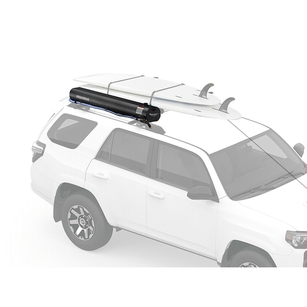 Piedi sporchi di sabbia, zampe sporche e biciclette infangate. Il RoadShower è il tuo fidato compagno che ti garantisce acqua a pressione in mezzo al nulla. Goditi una doccia calda alimentata dal sole, o dai un bella lavata ai piatti sporchi del campeggio. Robusta struttura in alluminio saldato con resistente finitura a polvere, il grande tappo superiore permette un facile riempimento. Pressurizzazione del serbatoio attraverso la valvola d'aria Schraeder o il tubo da giardino, con una pompa manuale o elettrica. La valvola limitatrice di pressione incorporata raggiunge in modo sicuro e automatico i 55 psi (max). L'adattatore per il tubo da giardino incluso sfrutta la pressione del tuo erogatore d'acqua di casa e riempie e pressurizza allo stesso tempo. Include una striscia termometrica adesiva sull'esterno del serbatoio. Due uscite d'acqua, una su ogni estremità, per poter scegliere l'accesso all'acqua più comodo. Lunghezza del tubo incluso: 140 cm. L'hardware di montaggio universale in acciaio inossidabile si adatta a tutte le barre trasversali Yakima e alla maggior parte delle altre barre portatutto. Peso 12.06 kg. Dimensioni L 139.7 cm x W 18.79 cm x H 14.57cm