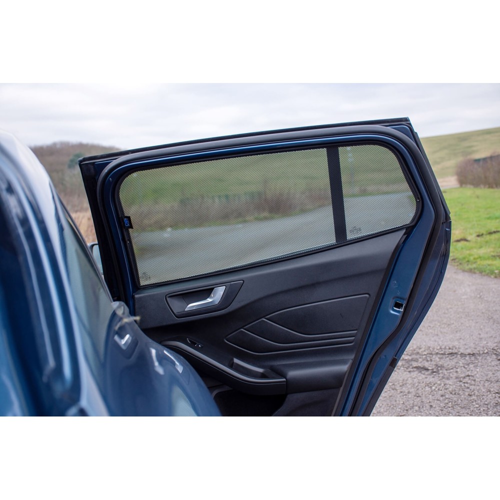 Applicabilita': Ford Focus Station Wagon (IV) dal 06/2018>. Kit da 6 pezzi. Ogni confezione contiene una tendina per ogni singolo cristallo posteriore del veicolo. Le tendine Privacy sono fatte su misura per adattarsi a qualsiasi dimensione e forma del cristallo. Le clips di montaggio rapido assicurano un montaggio facile, veloce e senza sforzo. Ogni set viene fornito in una comoda custodia con cerniera per contenere le tendine quando non in uso.