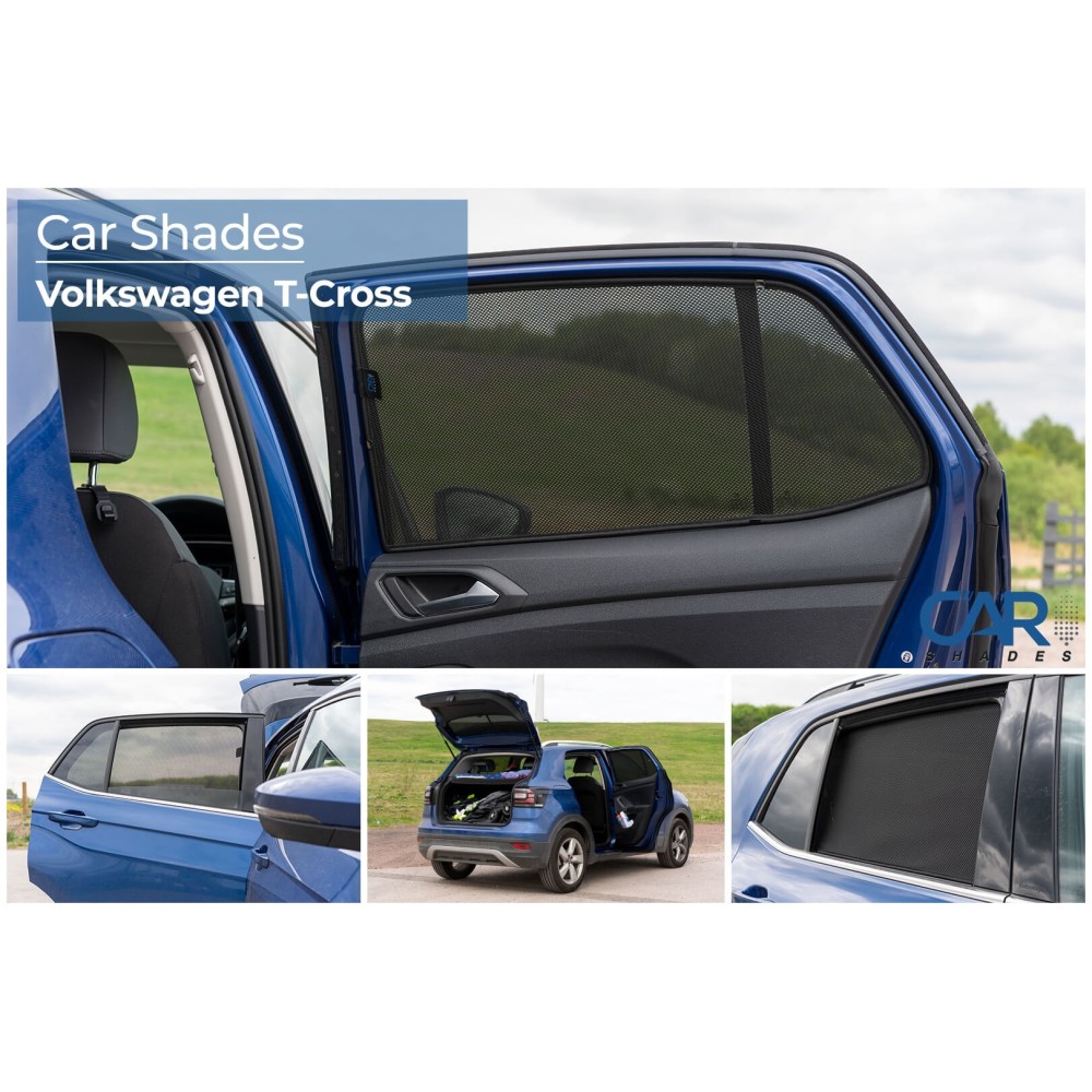 Applicabilita': Volkswagen T-Cross dal 04/2019>. Kit da 6 pezzi. Ogni confezione contiene una tendina per ogni singolo cristallo posteriore del veicolo. Le tendine Privacy sono fatte su misura per adattarsi a qualsiasi dimensione e forma del cristallo. Le clips di montaggio rapido assicurano un montaggio facile, veloce e senza sforzo. Ogni set viene fornito in una comoda custodia con cerniera per contenere le tendine quando non in uso.