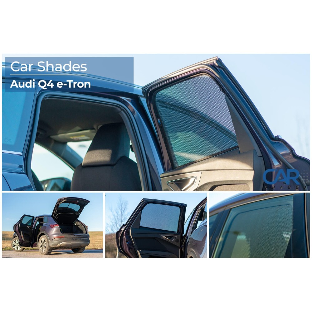Applicabilita': Audi Q4 E-Tron 5p dal 06/2021>. Kit da 6 pezzi. Ogni confezione contiene una tendina per ogni singolo cristallo posteriore del veicolo. Le tendine Privacy sono fatte su misura per adattarsi a qualsiasi dimensione e forma del cristallo. Le clips di montaggio rapido assicurano un montaggio facile, veloce e senza sforzo. Ogni set viene fornito in una comoda custodia con cerniera per contenere le tendine quando non in uso.
