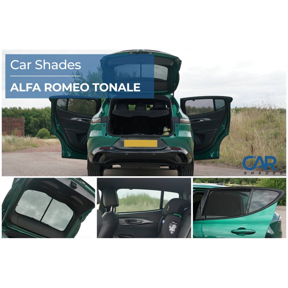 Compatibilità: Alfa Romeo Tonale dal 05/2022>. Kit da 4 pezzi. Ogni confezione contiene una tendina per ogni singolo cristallo posteriore del veicolo. Le tendine Privacy sono fatte su misura per adattarsi a qualsiasi dimensione e forma del cristallo. Le clips di montaggio rapido assicurano un montaggio facile, veloce e senza sforzo. Ogni set viene fornito in una comoda custodia con cerniera per contenere le tendine quando non in uso.