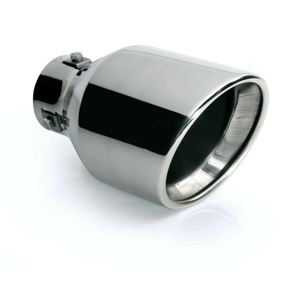Terminale di scarico in acciaio inox lucidato, modello TS-40. Diametro ingresso: 38-49mm. Taglio diagonale. Dimensioni come da foto