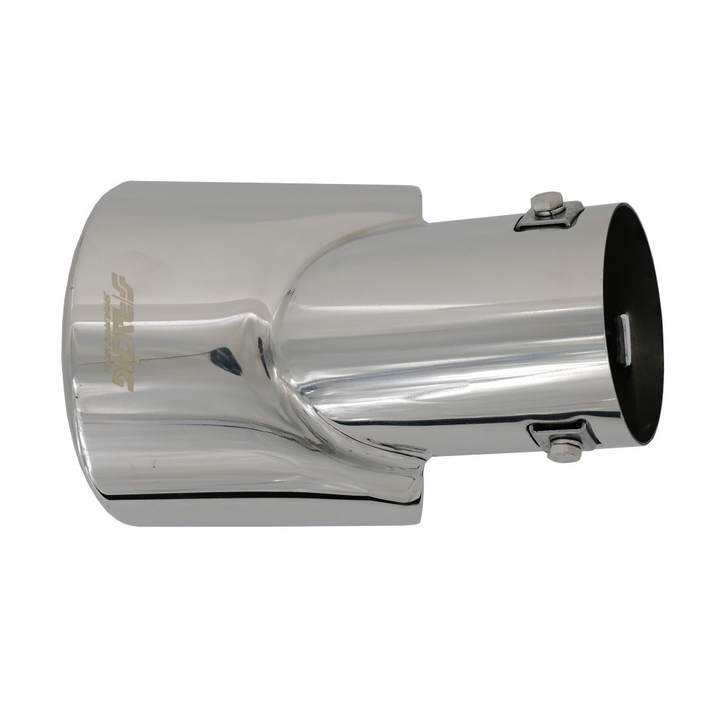 TRX/86 Terminale di scarico universale Simoni Racing singolo ovale. Curvatura 150 gradi. Fissaggio con bulloni. Diametro interno entrata: da 46 a 74mm - Lunghezza totale: 180mm. Uscita: 116x86mm. NOTE: Trattandosi di prodotto lavorato a mano le misure potrebbero differire da quanto riportato.