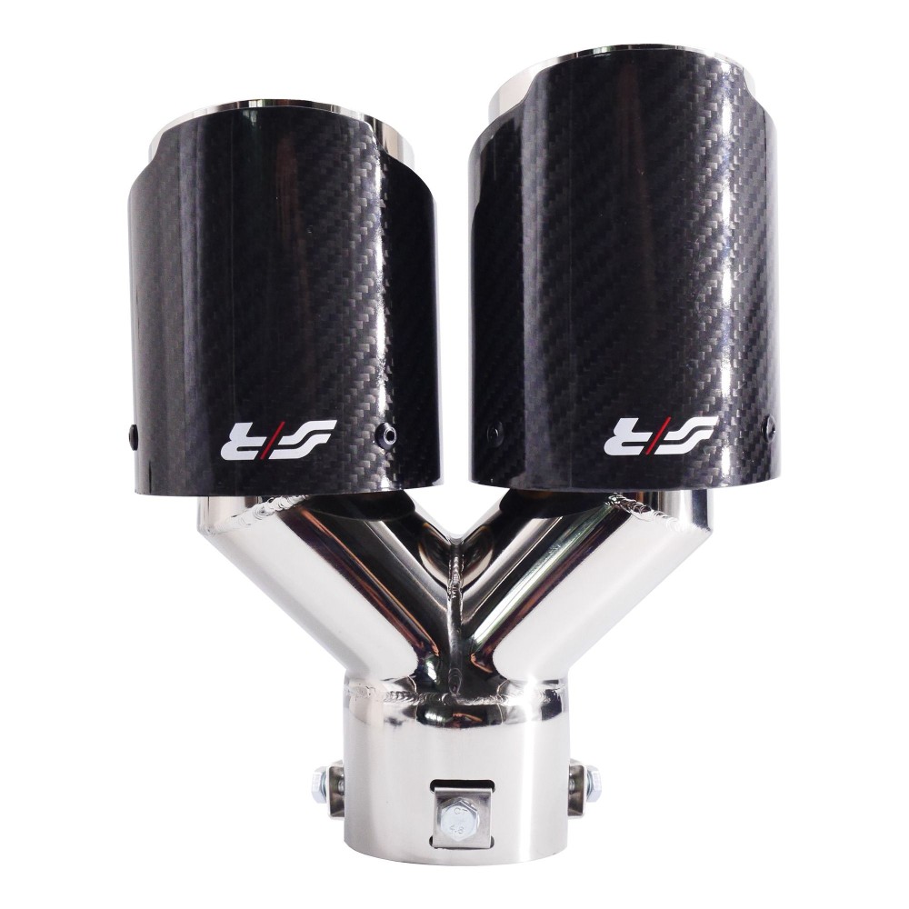 Terminale scarico universale carbonio doppio rotondo disassato 40 64mm TRX