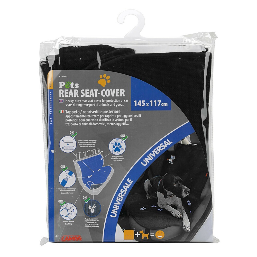 Appositamente realizzato per coprire e proteggere i sedili posteriori ogni qualvolta si utilizza la vettura per il trasporto di animali domestici, merce, oggetti... Universale per tutte le auto con sedile posteriore standard. Facile e rapido da utilizzarsi. Si posiziona in pochi secondi e si fissa utilizzando gli elastici ai 4 angoli. Con apertura per il passaggio della cintura di sicurezza. Lavabile (prodotto in poliestere impermeabilizzato con uno strato di pvc)