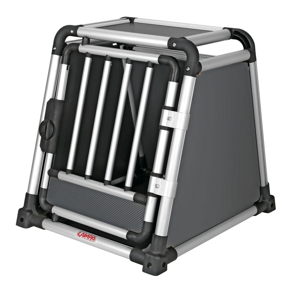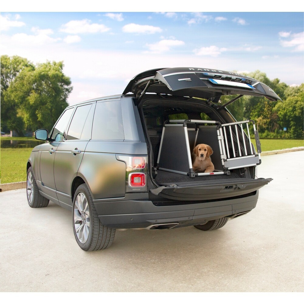 Massima sicurezza, struttura tubolare con angoli e raccordi in plastica arrotondata, senza angoli vivi e senza componenti e profili affilati. Non causa danni da contatto con gli interni dell'auto, con i passeggeri e con l'animale. Stabile, sicuro, silenzioso e senza vibrazioni durante la guida. Appositamente progettato con pannelli obliqui per adattarsi alle forme dell'abitacolo e dal portellone posteriore del veicolo. Tappetino interno in tessuto + neoprene asportabile e lavabile. Possibilita' di fissaggio agli ancoraggi del baule. (Cinghie da ordinarsi a parte). Peso 11Kg