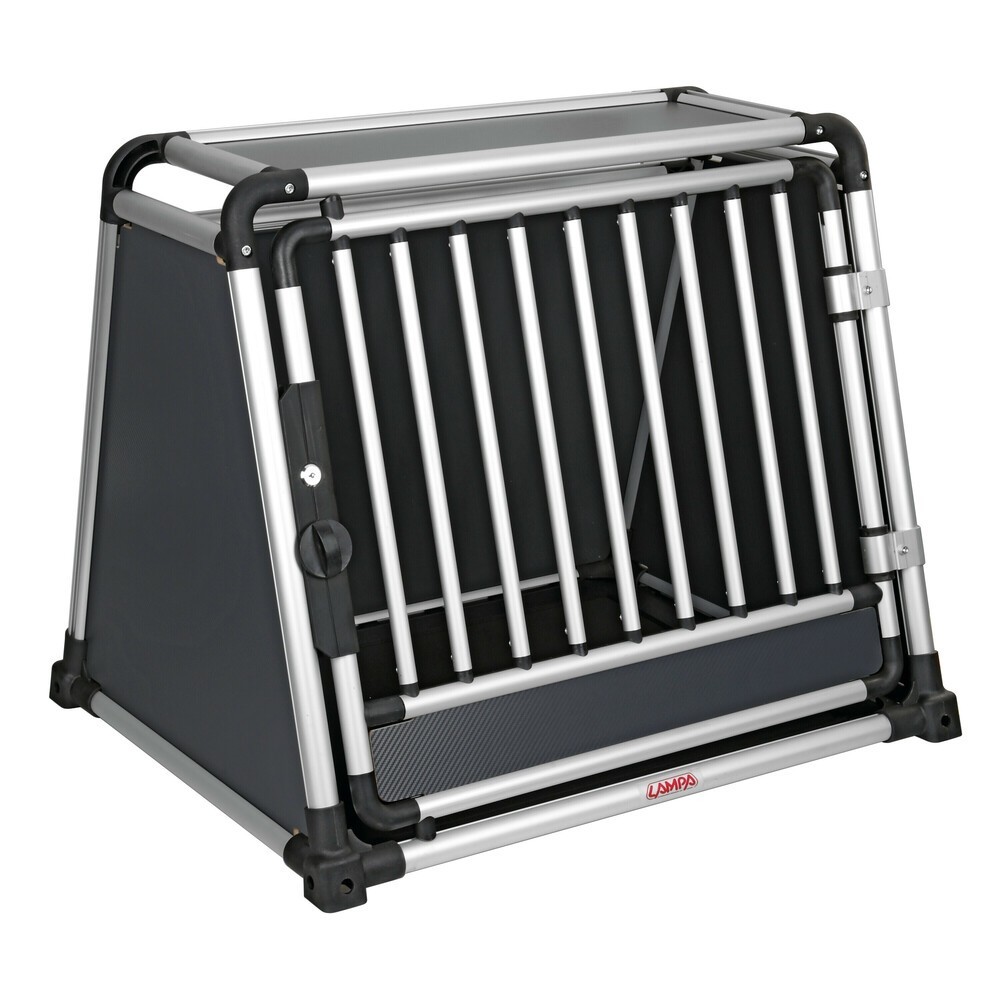 Massima sicurezza, struttura tubolare con angoli e raccordi in plastica arrotondata, senza angoli vivi e senza componenti e profili affilati. Non causa danni da contatto con gli interni dell'auto, con i passeggeri e con l'animale. Stabile, sicuro, silenzioso e senza vibrazioni durante la guida. Appositamente progettato con pannelli obliqui per adattarsi alle forme dell'abitacolo e dal portellone posteriore del veicolo. Tappetino interno in tessuto + neoprene asportabile e lavabile. Possibilita' di fissaggio agli ancoraggi del baule. (Cinghie da ordinarsi a parte). Peso 16,5Kg