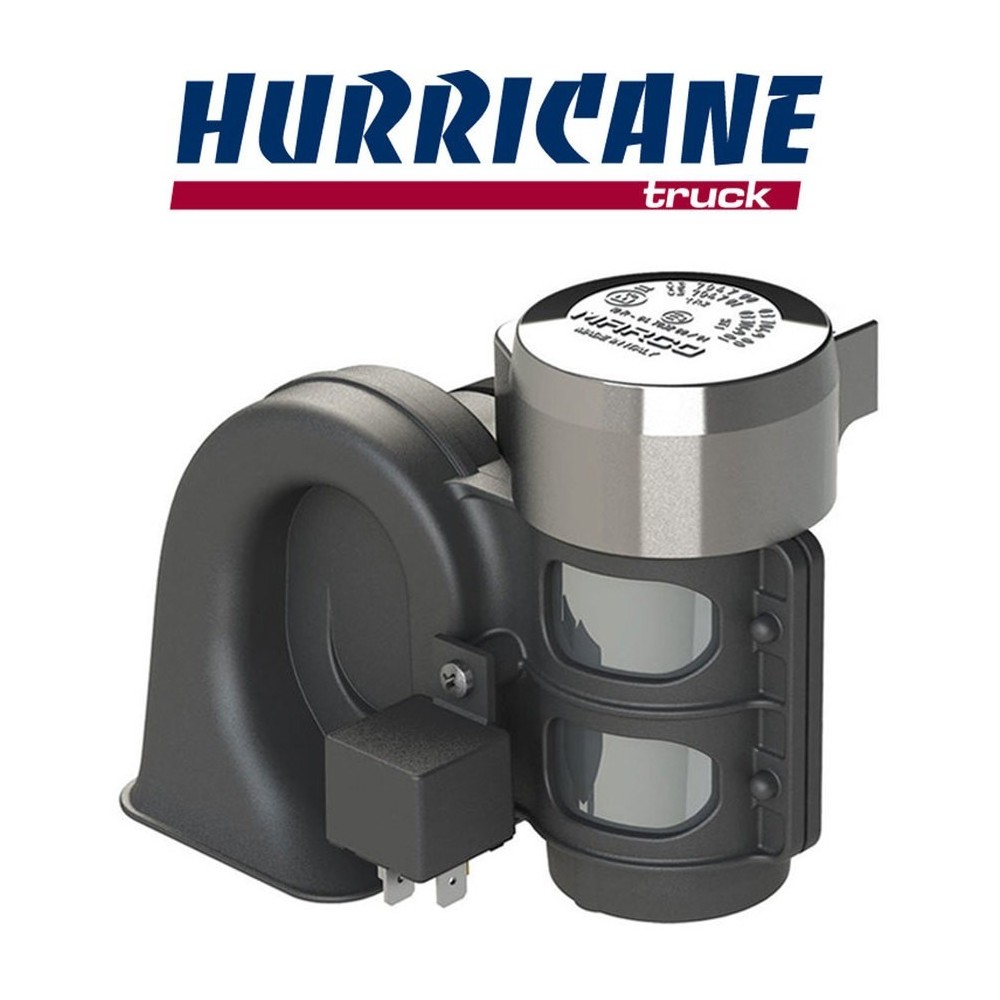 Tromba elettropneumatica marca Marco modello Hurricane con finitura cromata, compatta con suono monotonale potente. Il compressore integrato alla tromba consente l'immediata emissione del suono con la pressione del pulsante. Non e' necessario alcun cablaggio del tubo dell'aria. Rapida installazione con unico punto di fissaggio. Omologata R.28 ECE-ONU. Caratteristiche: 24V, 110db (2m), 310Hz. Dimensioni: 147x120x103mm