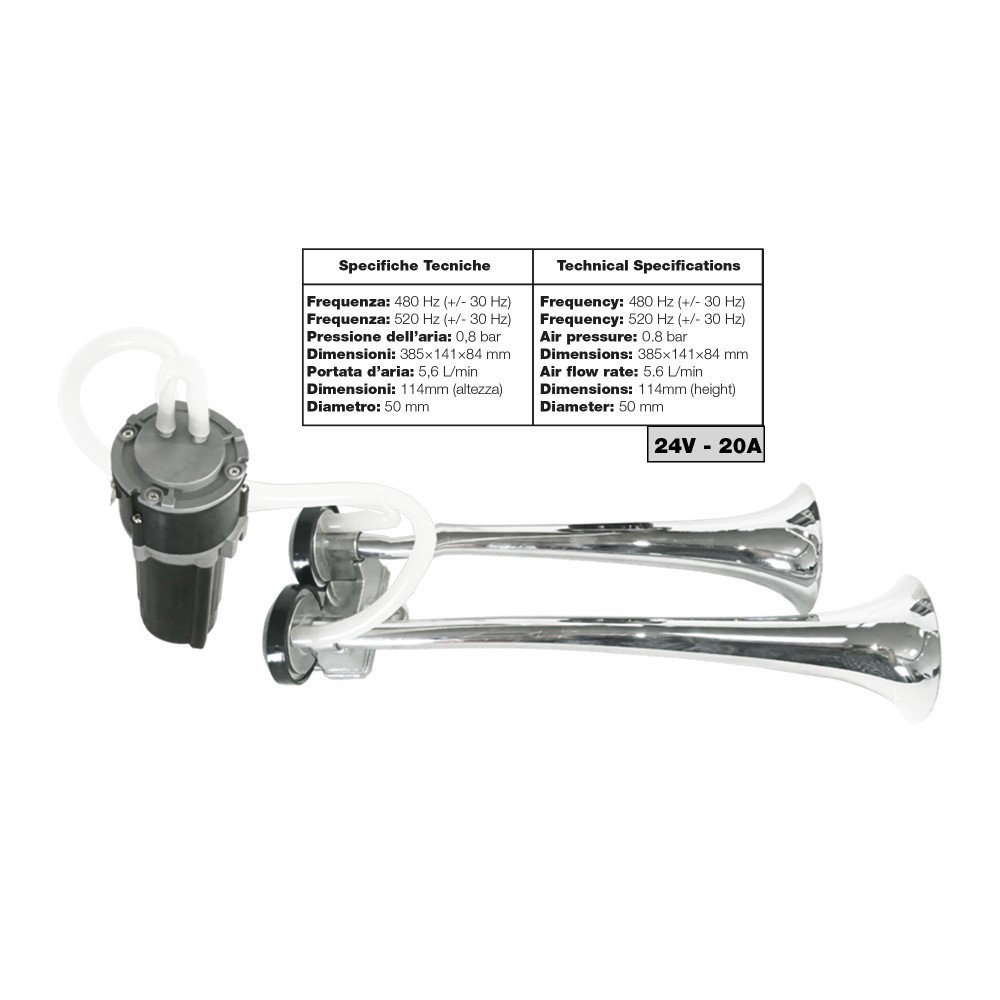 Tromba elettropneumatica compatta Hurricane cromata HT1/C 24V